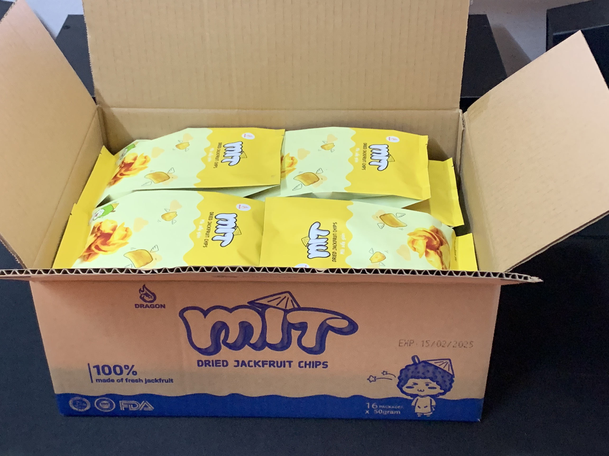 Sản phẩm Mít sấy giòn được đóng gói cẩn thận và bắt mắt, dễ dàng sử dụng mọi lúc mọi nơi. Mỗi gói mít sấy giòn đều mang đến sự ngọt ngào và giòn tan, giúp bạn dễ dàng thưởng thức trái mít mà không cần phải lo lắng về việc bảo quản hay chế biến.